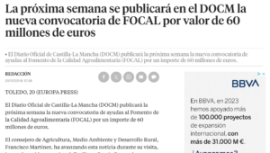 La próxima semana se publicará en el DOCM la nueva convocatoria de FOCAL por valor de 60 millones Leer más »