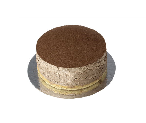 Postre individual que deleita con un ligero cremoso de chocolate trufado coronado con cacao en polvo.