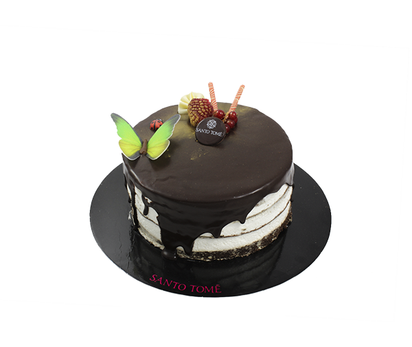 Tarta sencilla que combina y alterna un bizcocho de chocolate esponjoso y ligero con relleno de nata, la cobertura está realizada en dos fases, en primer lugar, nata que envuelve por completo la tarta y posteriormente un baño libre de chocolate trufado en la parte superior.
