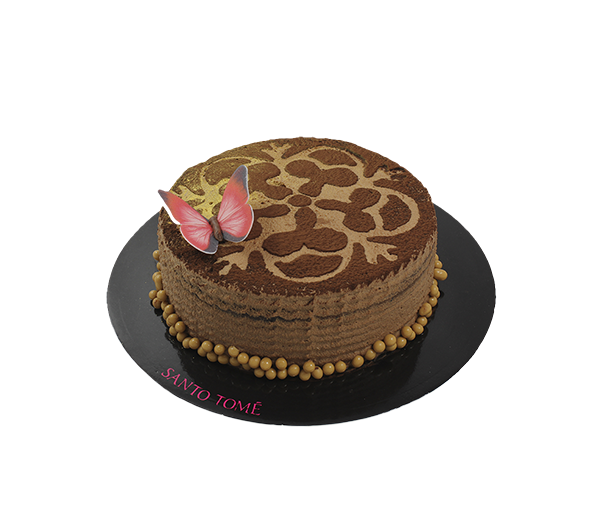 Tarta sencilla de bizcocho de chocolate esponjoso y ligero con relleno de trufa, la cobertura está realizada mediante chocolate trufado que envuelve toda la tarta rematado con un espolvoreado de cacao.