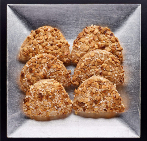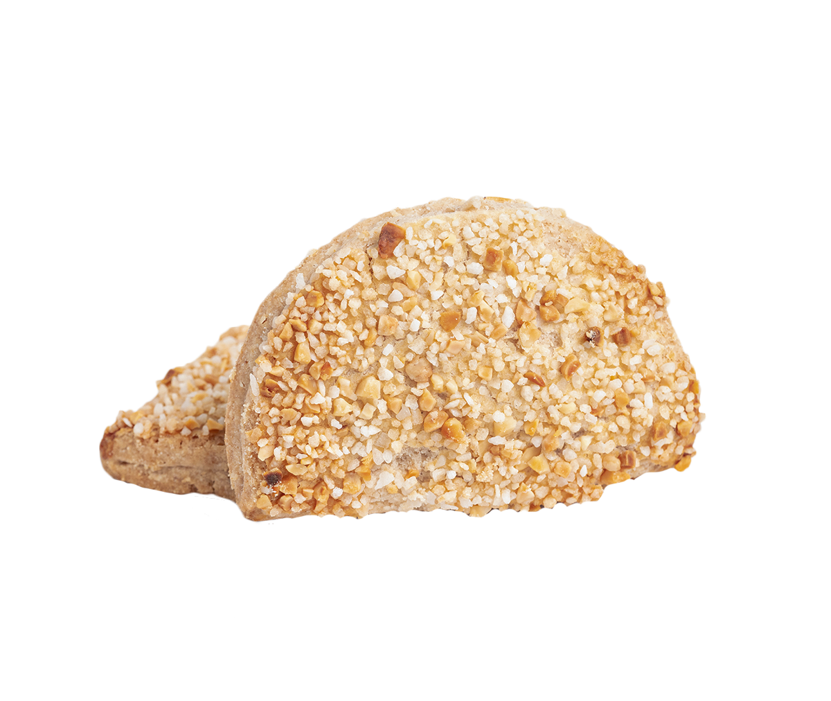 Pasta tradicional de harinas tostadas con cabello de angel confitado y recubierto de almendra tostada y azúcar.
